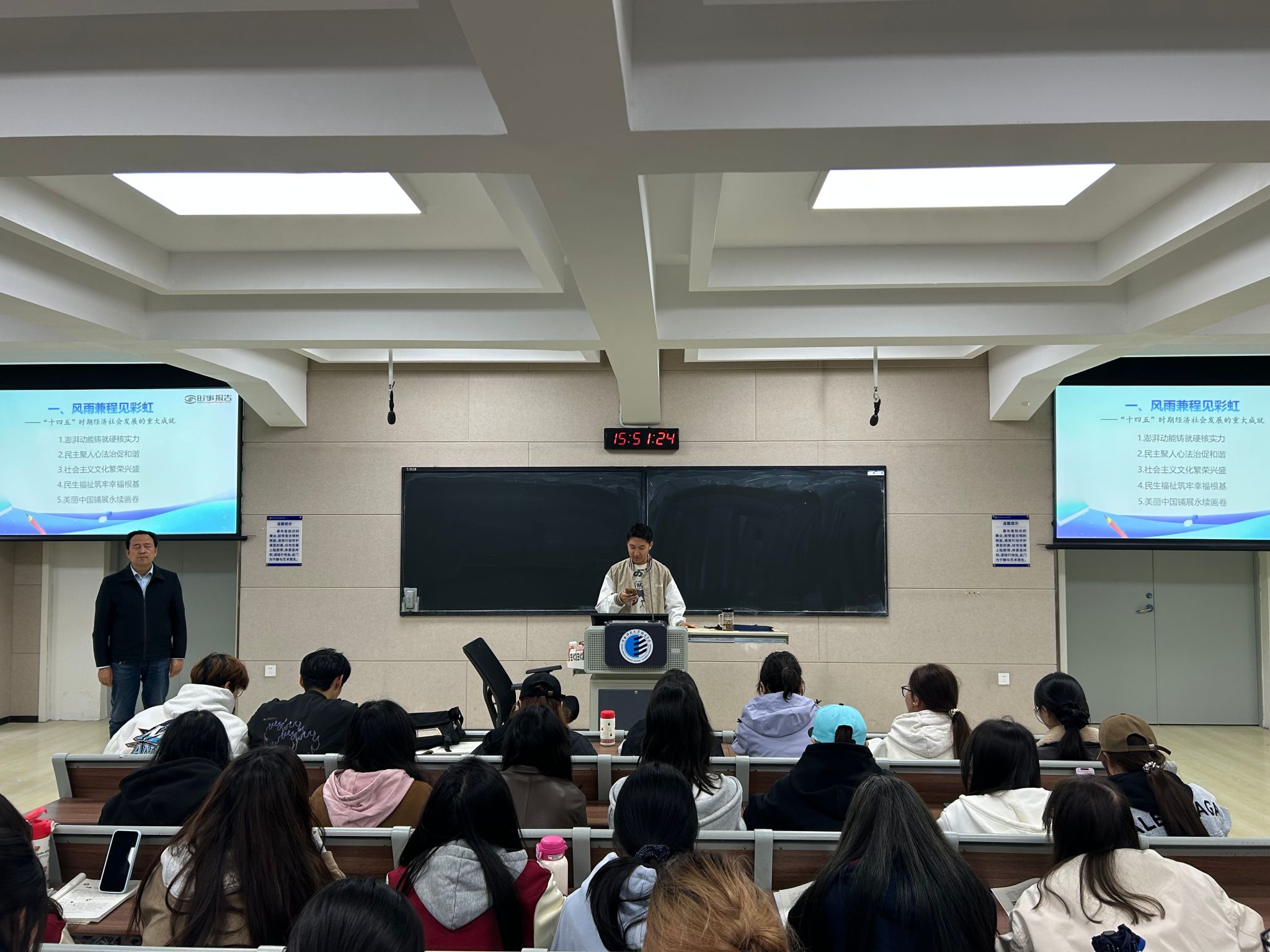 在回顾辉煌成就的基础上,李校长进一步深入阐释了“十四五”期间我国积累的宝贵经验:必须坚持党的全面领导、以人民为中心、新发展理念、深化改革开放和系统观念。这些经验既是“十四五”时期发展的实践结晶,也是未来继续前行的根本遵循,勉励青年学生要深刻领会其中蕴含的战略思维与治理智慧,自觉将个人成长与国家发展紧密结合。