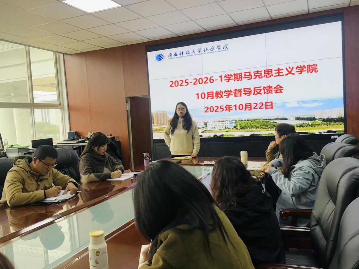 2025年10月22日,马克思主义学院在第一会议室召开10月教学督导反馈会,会议由马克思主义学院院长苏婕主持,全体任课教师参会。