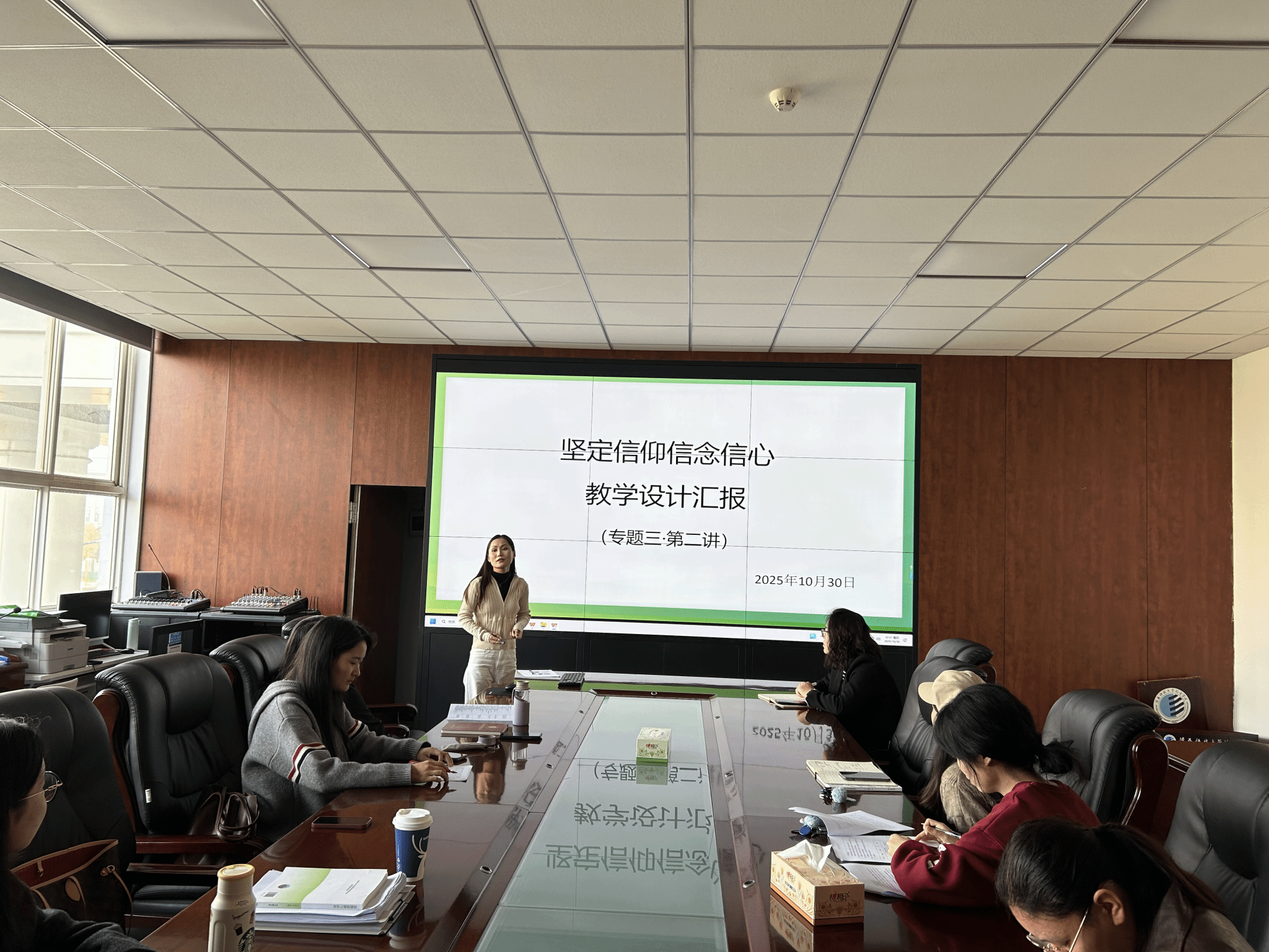 2025年10月30日,马克思主义学院在第一会议室召开期中教师座谈会,学院全体教师参会。会议聚焦期中教学工作检查与教学创新实践分享,为期中教学质量提升与后续教学改革提供了实践参考。