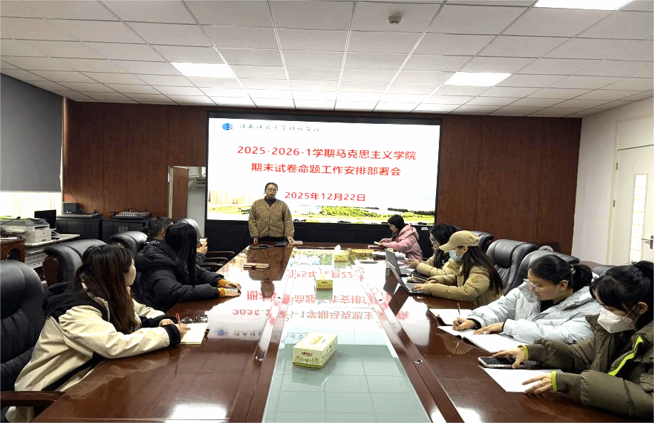 为进一步规范期末试卷命题工作,保障期末考试的科学性、严谨性与公平性,切实发挥考试以考促教、以考促学的作用,2025年12月22日,马克思主义学院在第一会议室召开 期末试卷命题工作安排部署会。学院院长、各教研室主任及全体教师参会。