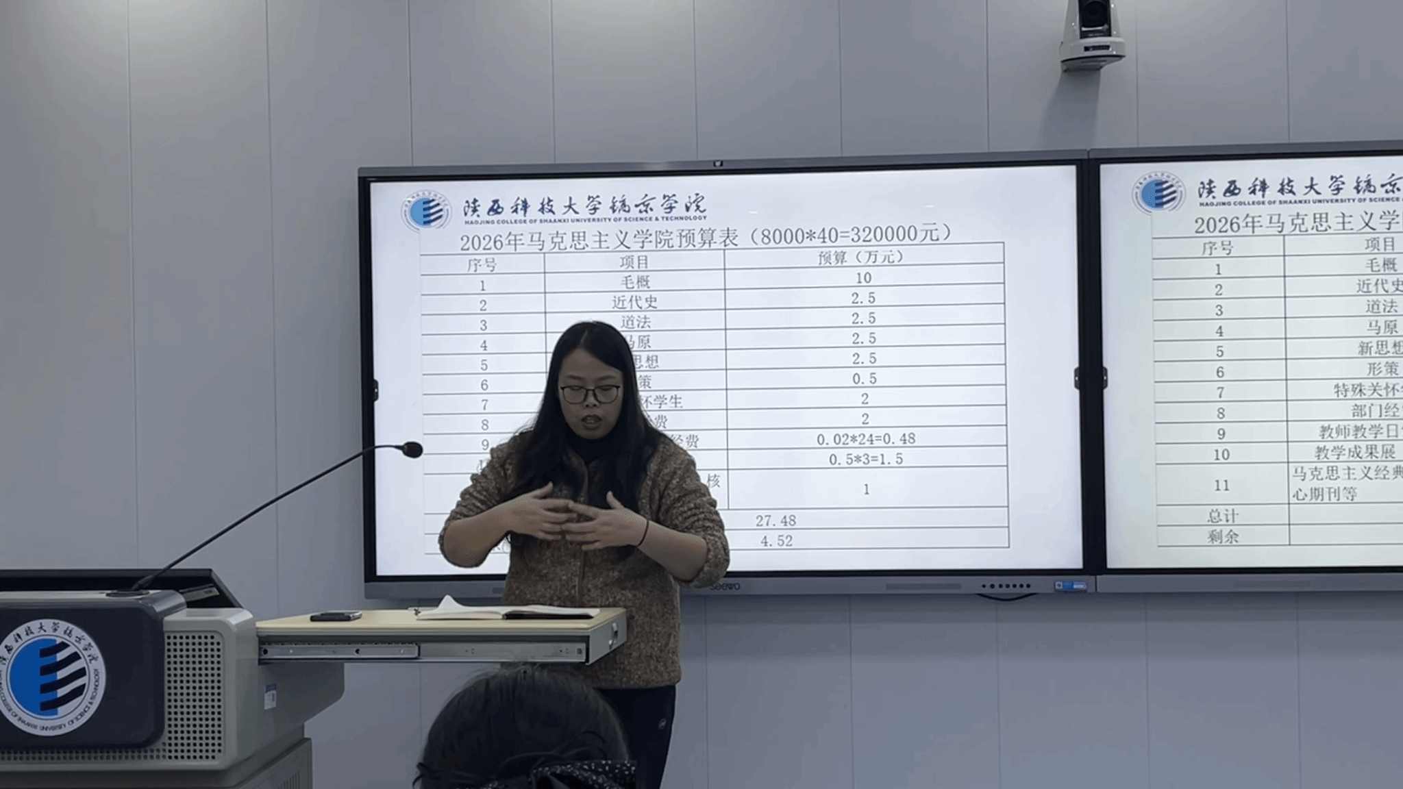 经费预算与使用规划是本次会议的重要内容。苏婕院长介绍,下学期学院将为各课程配备专项经费,用于支持课程策划、实践教学开展、师生互动活动等相关工作,鼓励教师结合教学实际制定详细方案,通过多样化教学形式积累优质教学成果,合理统筹使用相关经费。同时,学院为各部门及教师预留了日常教学经费,可根据教学需求用于采购必备教学工具等用途。此外,教育成果展相关经费可灵活调整,报账需按规定提交凭证,部分教学相关奖励项目将纳入后续预算统筹安排。