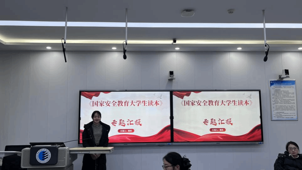 谢茜老师结合近期参加的国家安全教育培训,对《国家安全教育大学生读本》进行专题汇报,围绕读本核心内容、教学重点及实践要求展开分享,为学院后续开设相关课程提供了重要参考。