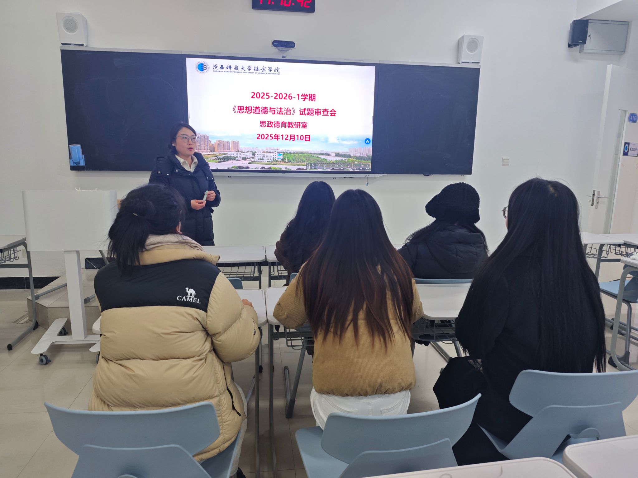 2025年12月10日,思政德育教研室组织召开《思想道德与法治》课程试题审查专题会议。教研室全体教师参与,围绕试题的规范性、科学性及育人实效展开深入研讨,旨在以严谨的命题工作推动课程考核优化,进一步落实立德树人根本任务。《思想道德与法治》是引导大学生培育正确世界观、人生观、价值观的核心课程。本次会议立足课程性质与教学目标,对期末试题进行逐题审议,重点评估试题内容是否全面覆盖教学重难点、难度分布是否合理、表述是否严谨无歧义。...